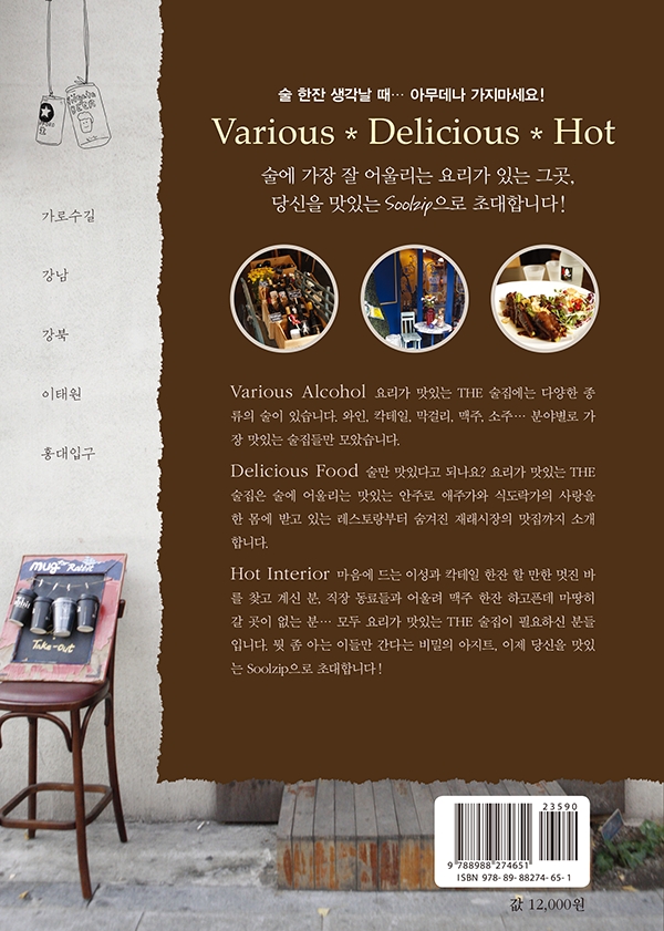 몇 해 전까지만 해도 “술집” 하면 남자들이 담배를 뻑뻑 피워가며 왁자지껄하게 부어라 마셔라 마시는 장면이 연상됐다. 하지만 술집 고객 중 여자 고객의 비중이 많아지면서 술집이 변하기 시작했다. 가장 눈에 띄는 변화는 인테리어. 여자 고객의 취향에 맞게 실내 분위기가 밝고 따뜻하고 세련되게 변화되었고, 치킨과 마른안주 위주의 안주는 ‘요리’라 불려도 손색없을 만큼 모양과 맛 면에서 아트적으로 업그레이드됐다. 음주문화 또한 바뀌었다. 깡소주를 먹어야, 거나하게 취해서 서로의 주사를 받아주어야 진정 “술 마셨다”라고 말할 수 있었던 분위기는 사라지고, 이젠 서로 담소를 나누면서 다과상을 대하듯 술을 마시거나 식사를 하며 음료수처럼 한두 잔 반주(飯酒)를 즐기는 사람들이 부쩍 많아졌다. 술집의 또 다른 변화는 술의 종류가 다양해졌다는 점이다. 소주, 막걸리, 맥주밖에 몰랐던 사람들도 이제는 다이닝바에서 식사를 하며 와인을 마실 줄 알게 되었고, 일본식 주점에서 고급 요리를 앞에 두고 사케를 나누는 모습을 쉽게 볼 수 있게 되었다. 높은 안목으로 선택된 ‘요리가 있는 술집, 술이 있는 레스토랑’ 최근의 술집 트렌드가 200% 반영된 술집 소개서이다. 요리가 있는 술집, 술이 있는 레스토랑의 조건을 모두 만족하는 술집들 중에서 인테리어, 분위기, 주인장의 개성, 보유하고 있는 술의 종류, 안주(요리)의 맛이 뛰어난 곳만 이 책에 실었다.