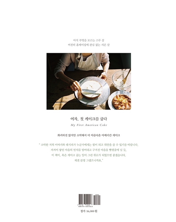 프랑스나 일본의 디저트처럼 정교하지 않지만, 그만큼 만드는 방법이 간단해 홈베이킹으로는 제격이다. 좋은 재료를 쓰면 그만큼 좋은 결과물을 낼 수 있는 아메리칸 케이크. 숙련된 홈베이커가 아니어도 충분히 시도해볼 만하다. 삼시세끼 밥 챙겨먹는 것도 쉽지 않은 일상이지만, 가끔은 지친 자신을 위해 혹은 위로나 용기를 전하고 싶은 누군가를 위해 케이크 굽는 시간을 허락해 보는 것도 좋겠다. 아무런 고민도 걱정도 없이, 바지런히 손과 몸을 움직이는 것. 밀가루, 달걀, 버터, 설탕 같은 단순한 재료를 섞어 뭔가 완성하는 기쁨. 베이킹이 처음인 당신에게도 충분한 위로를 줄 것이다.