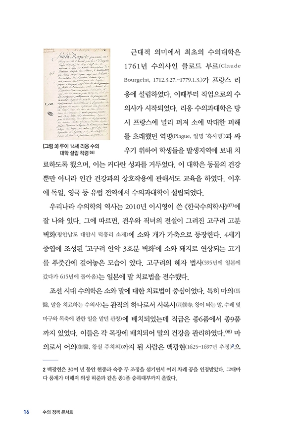 또 우리나라와 미국, 영국, 캐나다, 호주, 일본 등 주요 국가뿐만 아니라 국제기구나 수의 학계에서 제시하는 수의 정책을 체계적으로 분석하여 소개하고, 우리 현실에 부합되는 수의 정책 방향도 세부적으로 제시하고 있다.