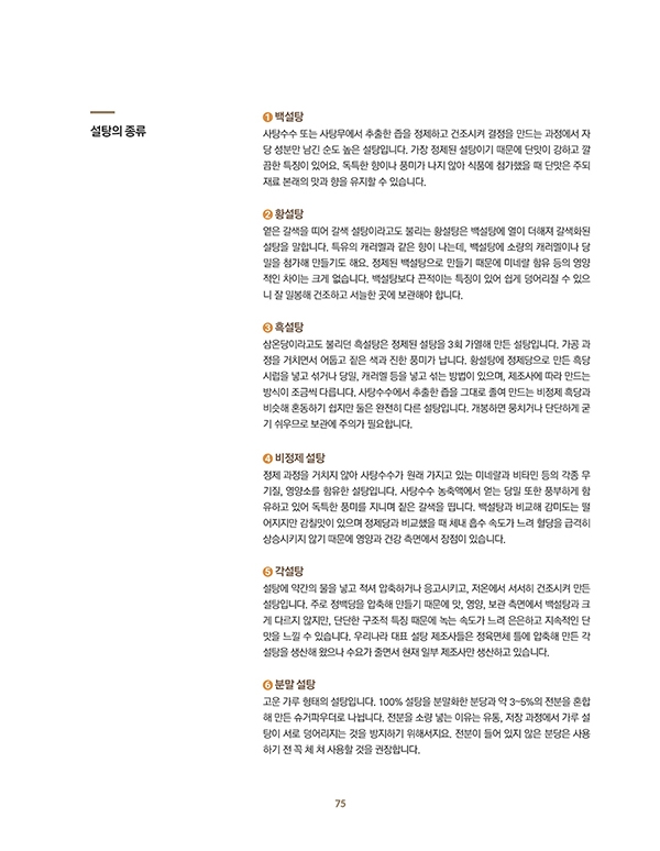 About Sugar 설탕, 너 누구니? / 자연에서 온 하얀 결정 / Character 물을 좋아하는 설탕 / 달콤한 반짝임, 결정화 / 달콤한 색을 만드는 두 가지 반응: 캐러멜화와 메일라드 반응 / 단맛 그 너머: 제과에 꼭 필요한 설탕